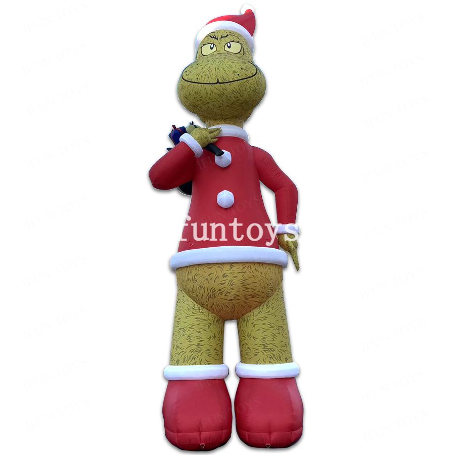 Christmas Holiday Theme Large Inflatable Grinch with Gift Bag Led Light Grinch Santa Claus
