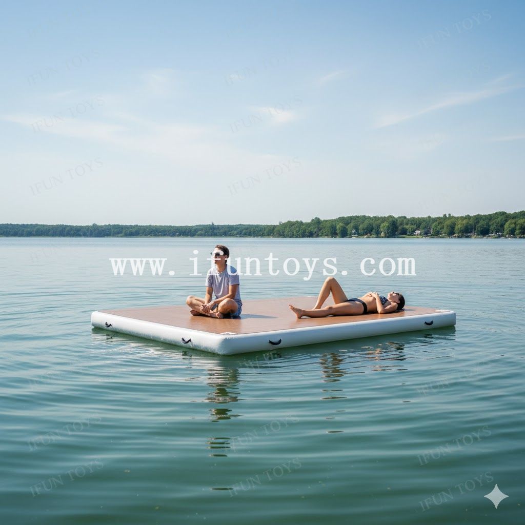 Lake Lifestyle Non Slip Inflatable Floating Dock Drop-stitch Deck for Sunbathing / Lounging